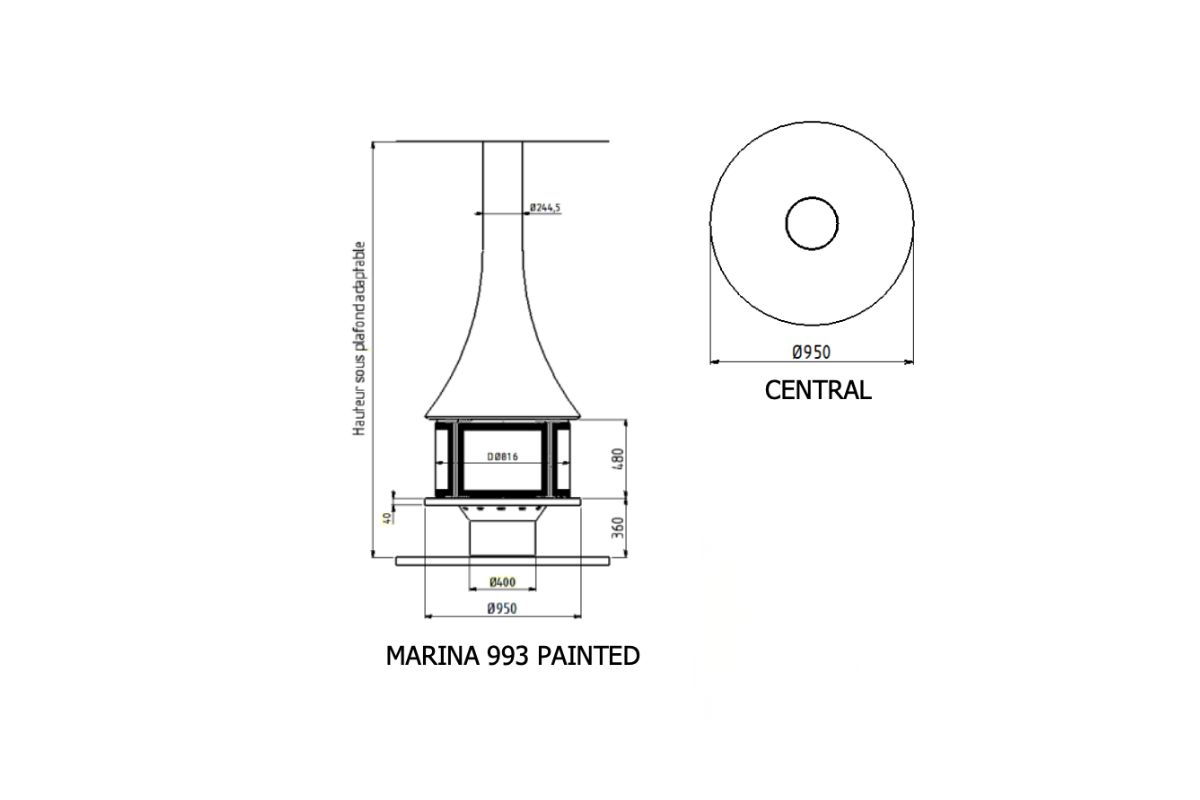 Slender and discreet the Marina 993 central fireplace, like all J C Bordelet fireplaces, will be made to suit your particular project. With its 360° view of the fire and high glass panels, you can see your fire from anywhere in the room. The Marina fireplace will deliver a pleasant, economical heat radiating from the entire hood. The sliding ceramic glass panels make cleaning easy. Like all JC Bordelet designer fireplaces, your model is unique and entirely manufactured in France by our sheet metalsmiths.
