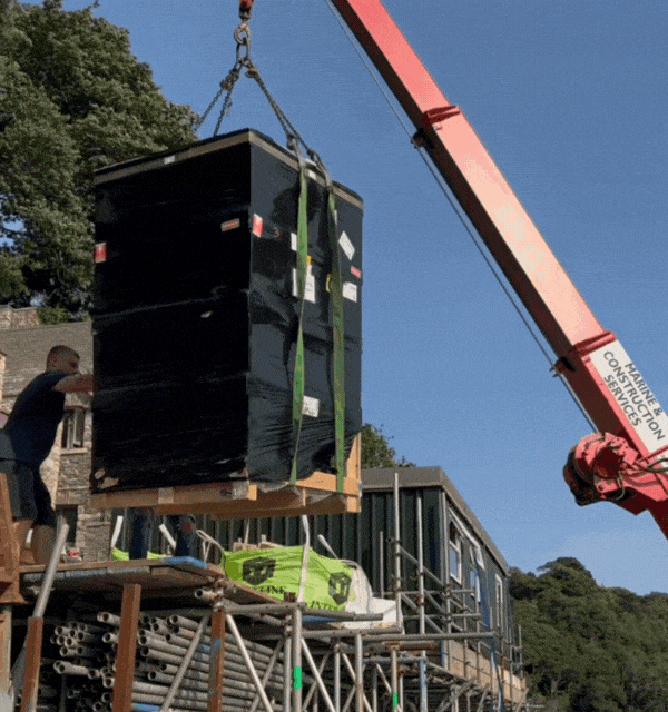 It was ultimately decided that a wall-mounted Calista was the best option to suit the build and wall behind the fireplace. Due to limited access to the property, the fireplace had to be delivered on the opposite side of the estuary, then delivered via boat, winched onto the property and winched up through the scaffolding. Overall, tidal considerations had to be made prior to the install on the day, but as always, the fireplace was safely delivered into the home.