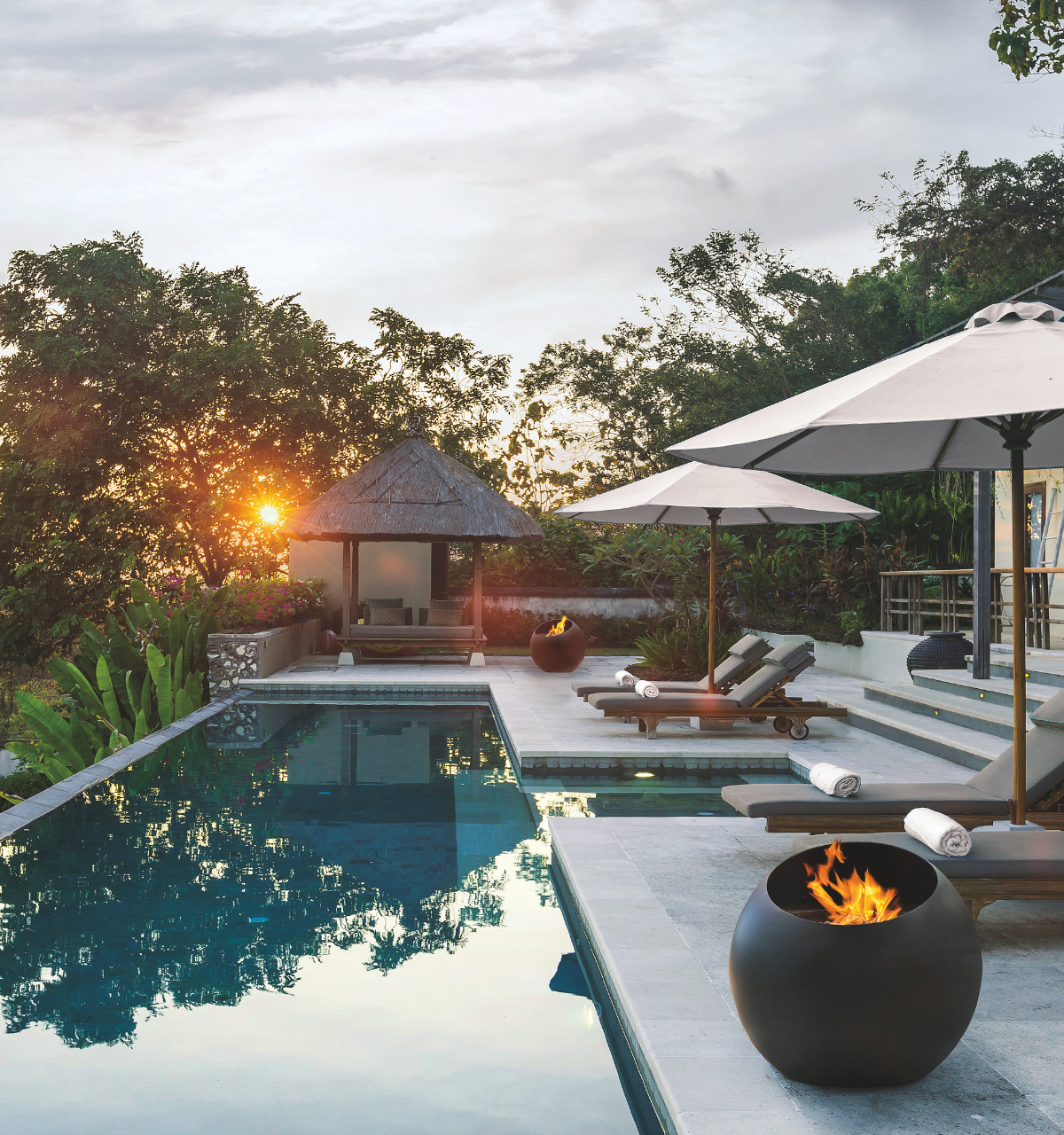 Focus Fireplaces’ Bathyscafocus Outdoor is a suspended outdoor fireplace.
