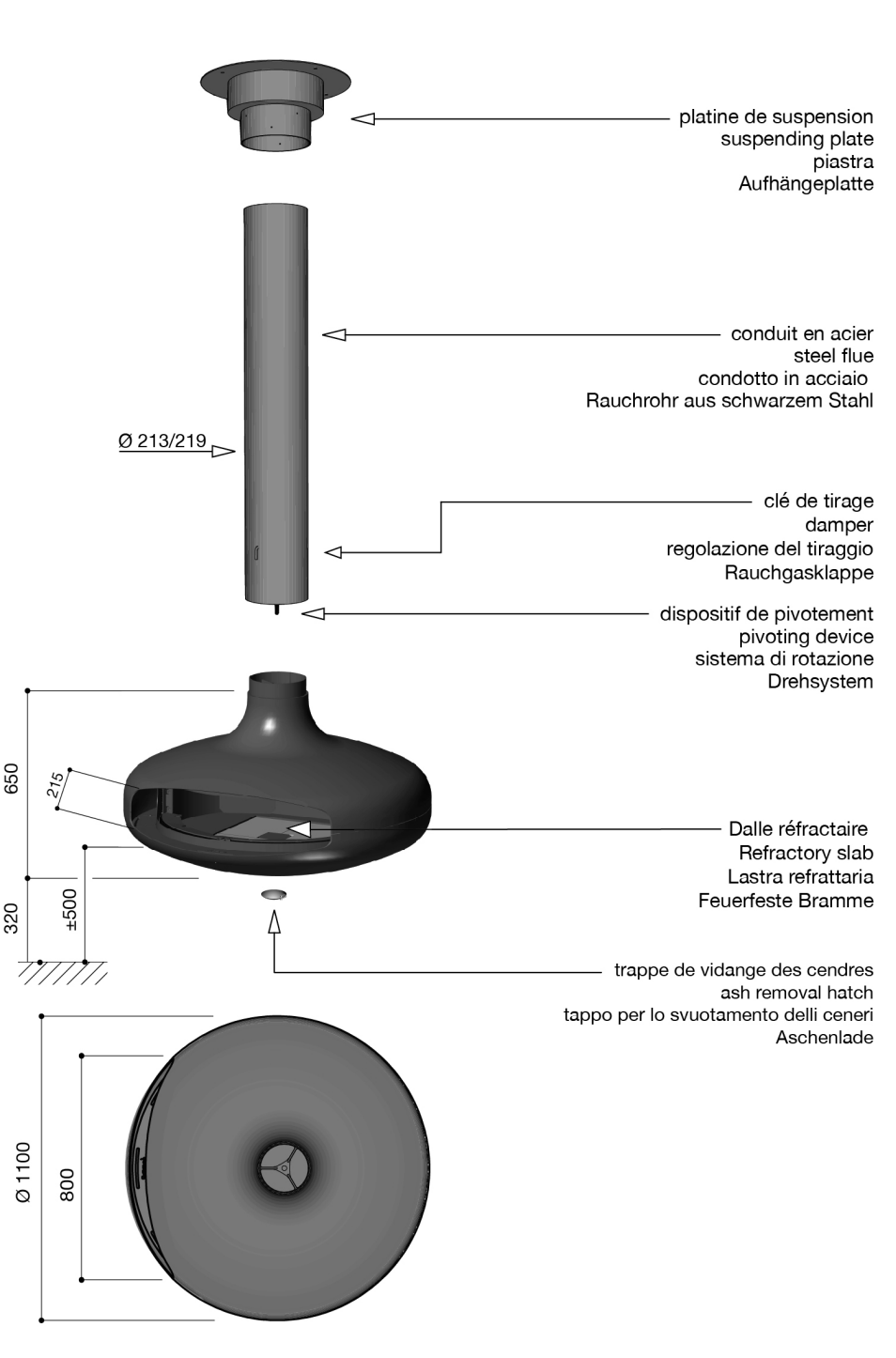 - Third, hanging and central fireplaces will be secured against the pendulum effect if required, and sufficient load bearing will be designed within the ceiling structure.