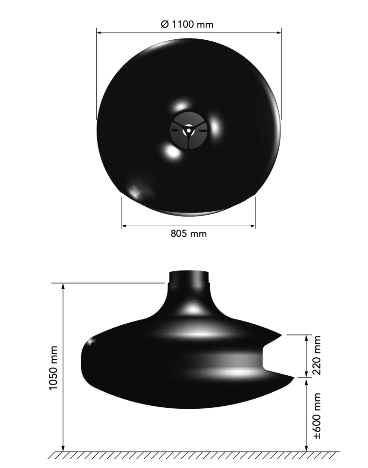 The Domofocus is the culmination of a double design quest: for a generous and welcoming organic shape, yet a more compact volume than its larger forebear, the Gyrofocus with its 1.25-m-diameter hearth.