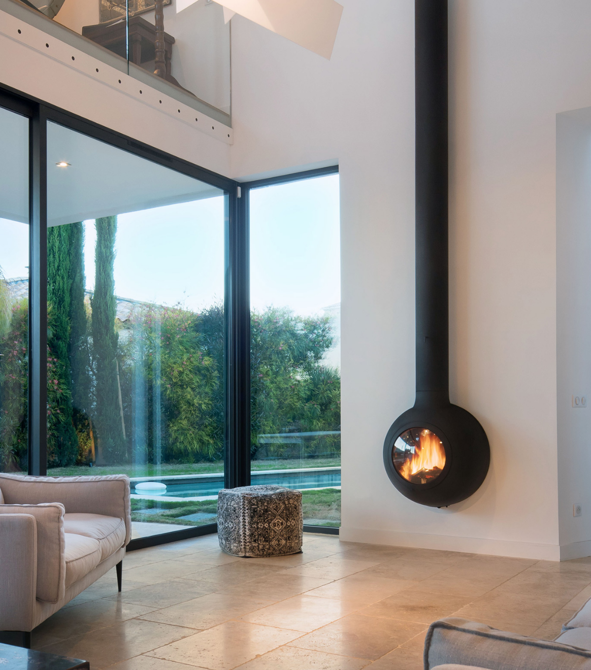 A ceiling suspended fireplace quite literally reinvents how the space is utilised and in doing so, provides not only an ambient level of warmth to the whole room but a striking focal piece too.