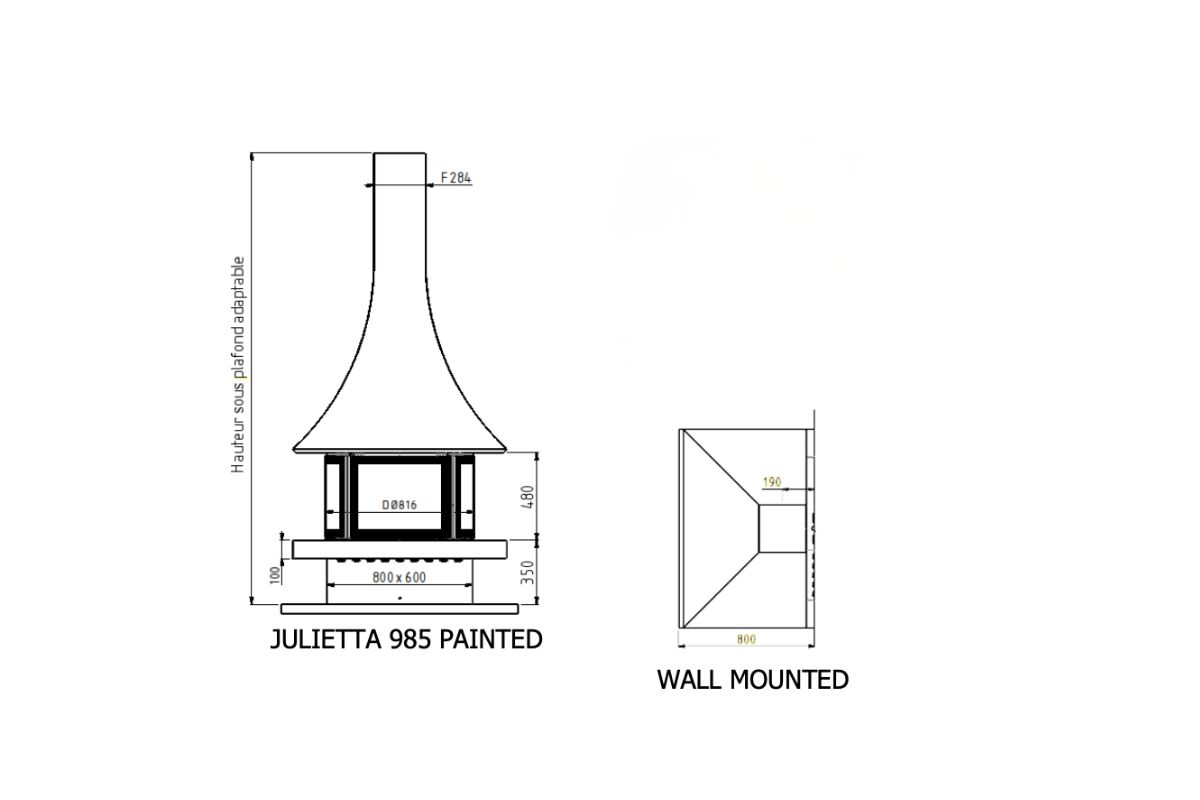This fireplace can take 50 cm logs, which is rare for a wood stove. Suspending a fireplace is a mark of the know-how of the JC Bordelet design office and its boilermaker employees. With this model of Julietta 985 fireplace you will choose a different but efficient wood stove.