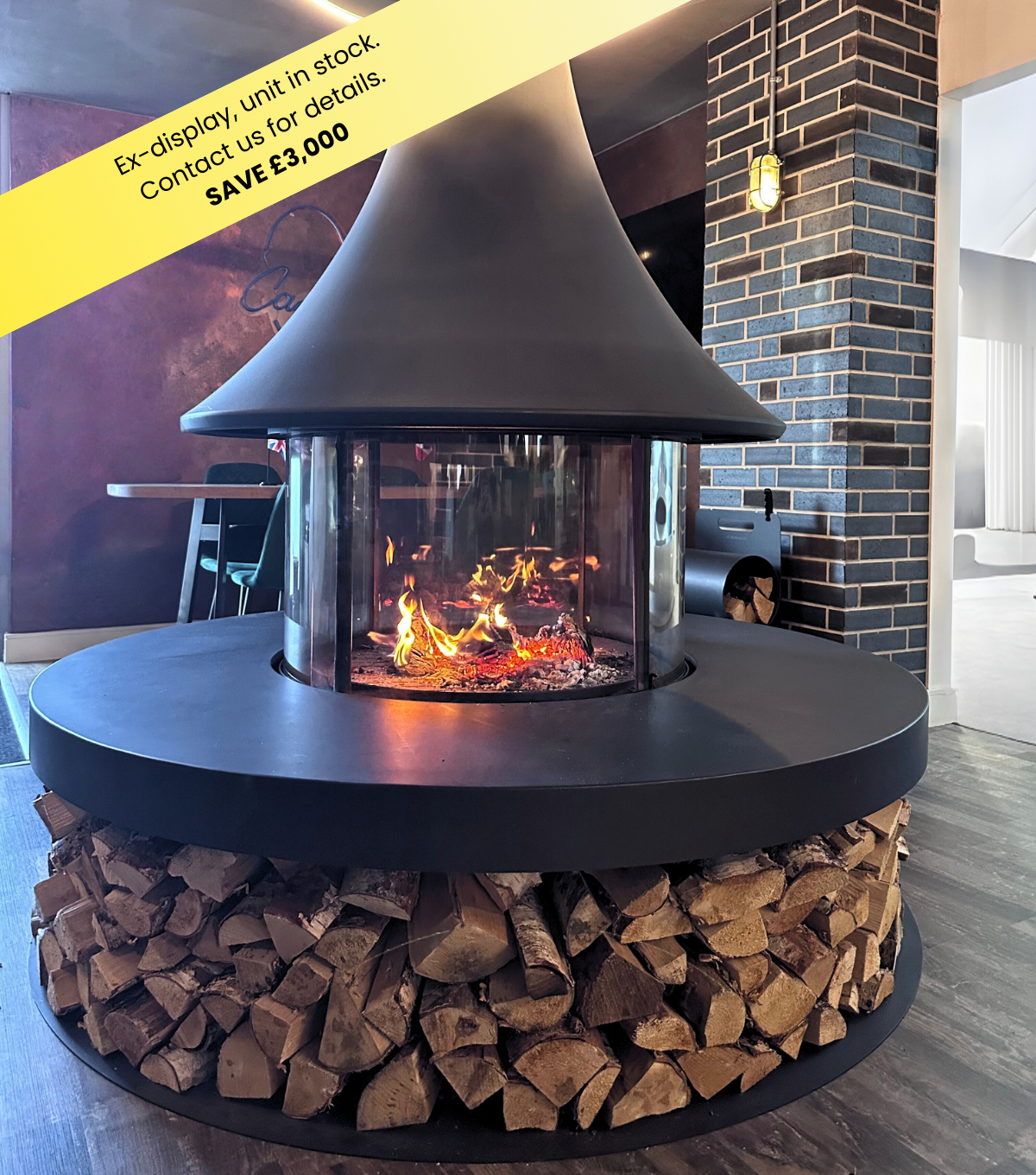 Beautiful fireplaces, hand crafted in France. Styles for Central, Wall mounted and corner applications either hanging, suspended or base mounted.
