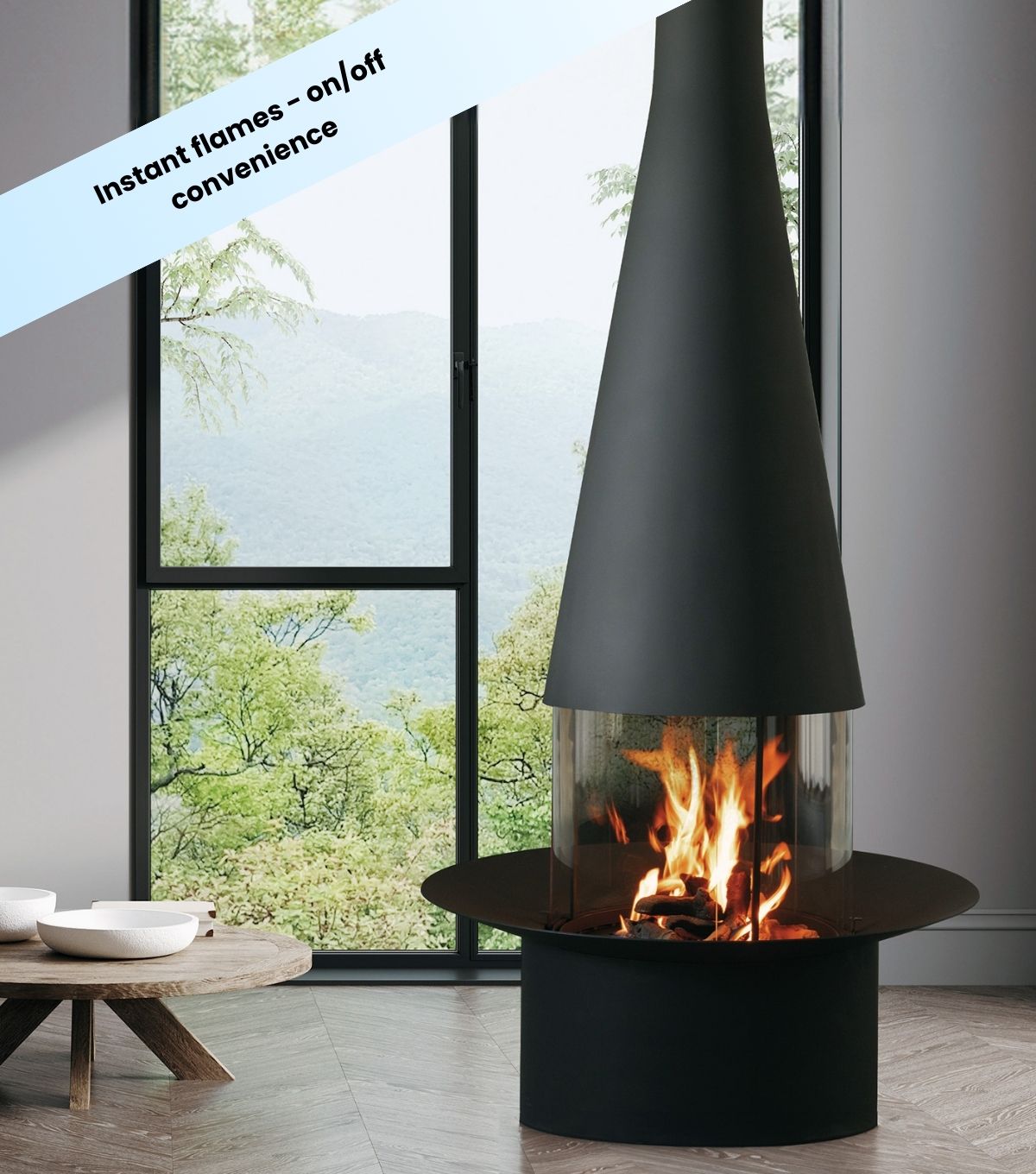 Naturally wood burning, with models available in bioethanol (no chimney), gas and electric options.